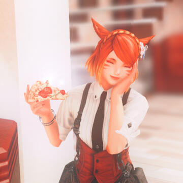 Cinu Pupurin is the name given to this spunky little Miqo! She doesn't know much of her past, only that she has a twin brother and had mostly been raised around Costa del Sol. Her late mother's cooking is what inspired Cinu to pursue being the best culinarian in hopes of sharing the feeling of love and comfort through food to everyone in Eorzea!As bright and cheerful as she is though, not everything is as it seems. On one of her ingredient runs in the markets of Ul'dah, she heard a faint voice calling to her. Curious by nature, she follows the voice that ends up leading her to one of the stalls; a shiny crystal displaying. The faint voice from earlier got louder as she got closer and her mind was filled with a whirlwind of words she couldn't keep up with before landing on the phrase: Liberame. Cinu then used what all gil she had to buy off this crystal, changing her normal life from then on. . .Nowadays, Cinu spends most of her time fulfilling tasks for her mentor Mistress Velvette. It's pretty normal stuff such as cleaning the stables, helping others in the field, and managing the FC Café to name a few. When not being a hostess, Cinu would use her free time to go out and explore the neighboring cities to find exciting and fun places, adventures, and possibly make a few friends along the way!